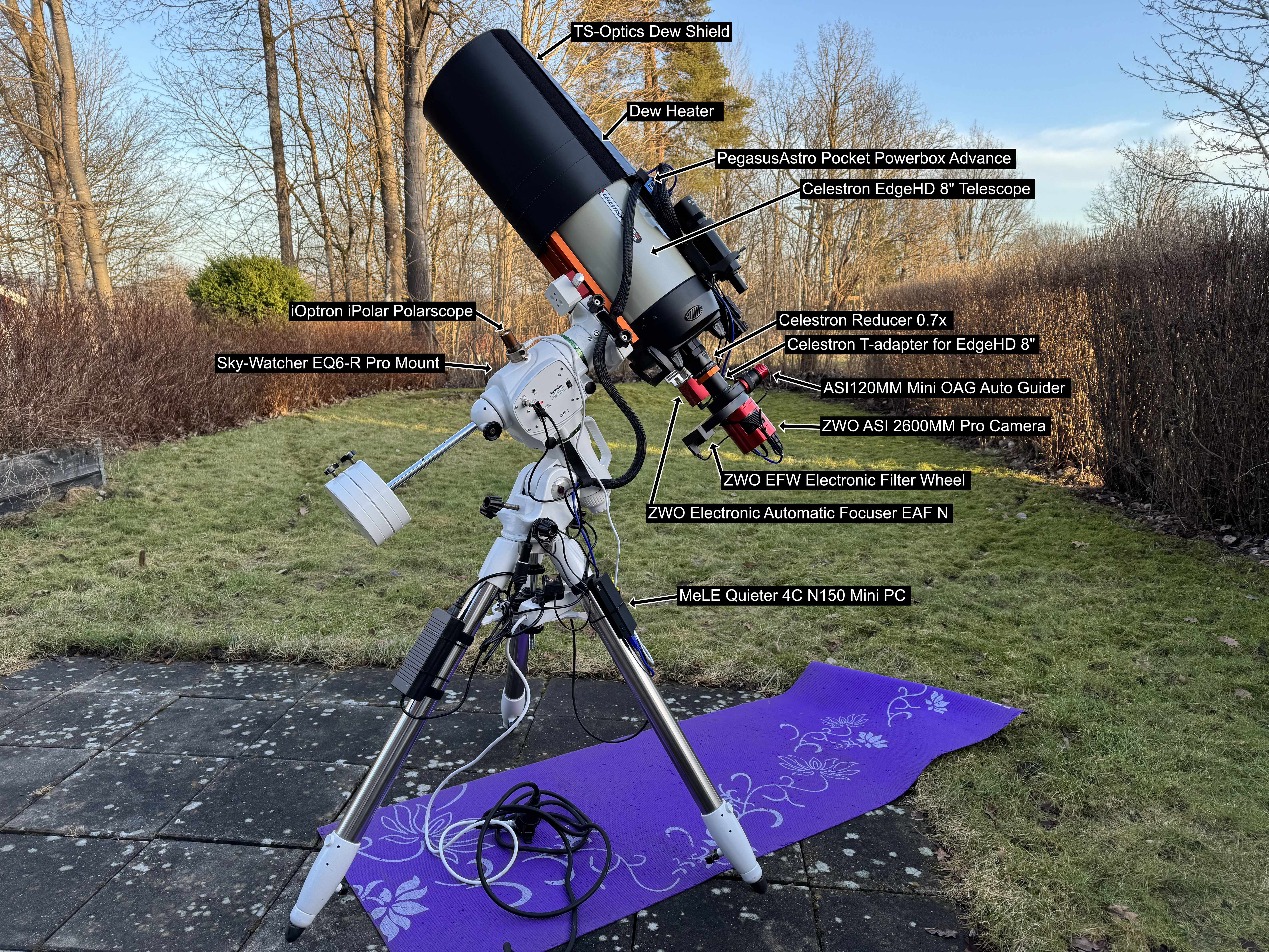 EQUIPMENT Canon EOS 600D(a) Guidescope SkyWatcher SynGuider Meade 2080 SkyWatcher Esprit 80ED photo session SkyWatcher Esprit 80ED TS-Optics 8″ f/4 UNC Newtonian setup TS-Optics 8″ f/4 UNC photo session My Telescope 2021 Allsky camera internal Allsky camera external view Allsky camera installed Image capture with N.I.N.A. Celestron EdgeHD 8″ Schmidt-Cassegrain photo session Celestron EdgeHD 8″ Setup
